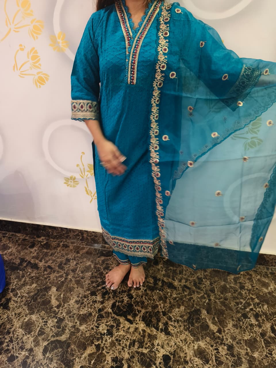 Step into elegance with our Pure Cotton fabric in a rich Dark Firozi hue – a perfect blend of comfort and class. 🌌